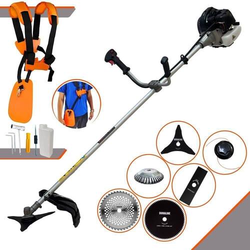 Roçadeira Lateral ANMAX CG430B À Gasolina 2 Tempos 43cc 1,7HP + Faca 3 Pontas 255m + Faca 40 Dentes 255mm + Faca 80 Dentes 255mm + Escova 38 Cerdas