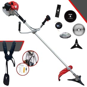 Roçadeira Lateral ANMAX CG430P-TB Plus À Gasolina 2 Tempos 43cc 2HP + Faca 3 Pontas 255m + Faca 40 Dentes 255mm + Faca 80 Dentes 255mm + Escova 38 Cerdas