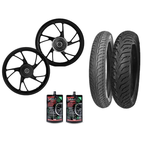 Kit Roda Rodao Jante Pe De Galinha Lona + 2 Pneu City Dragon Pirelli 90/90-18 80/100-18 + Selante Pneu