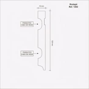 Rodapé revestido com melamina de alta resistência pronto para instalação, não necessita pintura. O Rodapé é desenvolvido em um material ecologicamente responsável e tecnicamente eficiente. O MDF é um padrão internacional de qualidade em ecologia e sustentabilidade, com inúmeras vantagens de aplicação.sem empenamento, mostra-se um material que entrega um Rodapé final de excelência. Não descolore, tonalidade do produto não se altera, devido o revestimento melaminico ser composto de vernizes de alta resistência a riscos, pigmentos e resinas de alta qualidade, o que garante um produto de sem oscilação de cor, independente do ambiente onde se encontra. Acabamento: Liso Altura do Conjunto: 12 cm Ambiente: Interno Ambiente Principal: Sala de Estar Cor: Branco Cor Predominante: Branco Informação Complementar: 10x Rodapé de MDF 12cm x 15mm x 2,40m com Friso Resistente a Umidade 1202 Branco Altura: 12 Peso: 0,987