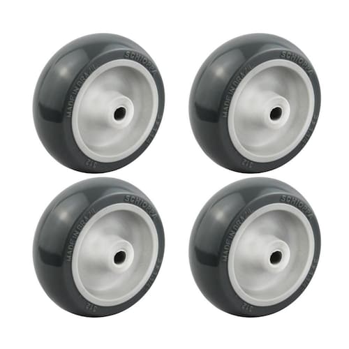 Feitas em material termoplástico com revestimento em PVC, essas rodas possuem um núcleo resistente que garante a sua eficiência mesmo em ambientes com piso liso, asfalto, cimento rústico, cimento liso, madeira, metálico, cerâmica, epóxi e outros. Além disso, elas reduzem ruídos e vibrações, proporcionando a preservação da carga.