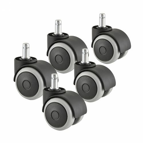 Roda rodizio rodinha para cadeira Ø50mm Anti risco Rodizio esferico Valor do kit 5 peças Especificações Técnicas: Diâmetro: 52mm Capacidade de Carga: 45 Kg Altura Total: 63mm Fixação: haste de 11mm com anel Sugestões de Aplicação: Cadeiras para escritório. Marca: Não Informado