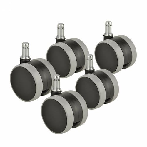 Roda rodizio rodinha para cadeira Ø60mm Anti risco Valor do kit 5 peças Diâmetro: 60mm Capacidade de Carga: 55 Kg por rodízio. Altura Total:74mm Fixação: haste de 11mm com anel Sugestões de Aplicação: Cadeiras para escritório. Recomenda-se a de todos os rodízios. Marca: Não Informado Ean: 7898077293837