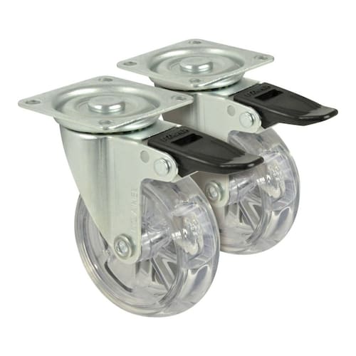 Rodizio em pu cristal conhecido como roda de silicone de Ø75mm Anti risco Rodinha com freio Valor do kit 02 peças Especificações Técnicas: Diâmetro: 75mm Capacidade de Carga: 50 Kg Altura Total: 97mm Fixação: Chapa plana Sugestões de Aplicação: Cachepôs, suporte de vasos, fruteiras, porta-botijão, racks pequenos, puffes, berços, pés de cama, gaveteiros, mesa de cabeceira, armários, gabinetes, mesas de centro, carrinhos para chá e churrasco, bares, suportes de CPU e pequenos móveis em geral. Marca: Não Informado