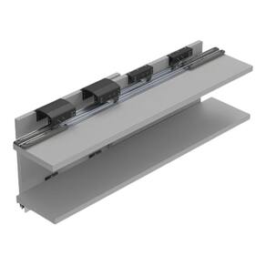 Sistema deslizante Dominus é indicado para móveis de alto padrão e requinte. Simples e fácil de instalar e com excelente acabamento estético. Possui amortecedor na parte superior e opcional de amortecedor central para três portas.