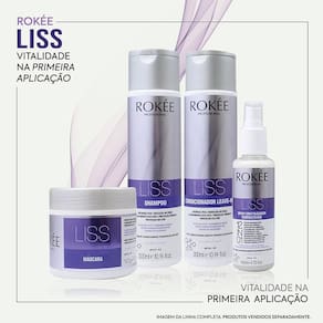 OCondicionador Liss ROKÉE Professional, enriquecido com Óleo de Coco, Blend de Silicines, Vinagre de Maça a Ativos Nanotecnológicos que blindam e hidratam, proporcionando nutrição e reparação dos cabelos, além de reduzir o volume e o frizz dando um efeito disciplinador e alisamento temporário do fios. Promove o aumento da massa capilar, proteção térmica da cor, deixando os cabelos macios e com brilho tridimensional.
