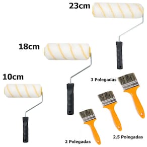 Kit Para Pintura Com 6 Peças Pincelada fácilDifícil de soltar pelosUniforme e delicadoSem travamento1. (Um) Rolo de Lã Baixa Para Parede 23cm1. (Um) Rolo de Lã Baixa Para Parede 18cm1. (Um) Rolo de Lã Baixa Para Parede 10cm1. (Um) Pincel Trincha Para Pintura 3 Polegadas1. (Um) Pincel Trincha Para Pintura 2,5 Polegadas1. (Um) Pincel Trincha Para Pintura 2 Polegadas Marca: Não Informado
