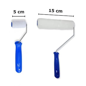 Indicado para: esmalte, epóxi e resinas Cor da lã: branco Cor do cabo: azul Composição: rolo fabricado com lã sintética, fundido em tubo plástico sem utilização de colas Profissional Tamanhos: 50mm - 150 mm Altura da lã: 6 mm Validade: indeterminada Conservação após limpeza: secar à sombra