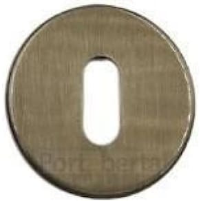 2 entradas de chave interna 066 par em latão tipo redonda com furação 3100/5100 para fechadura interna, com dimensão espessura 6mm x diamentro 44,5 mm, com sistema fixação sobre pressão com os fixadores em termoplásticos, sem parafusos aparentes. Acompanha os parafusos e fixadores de termoplásticos.