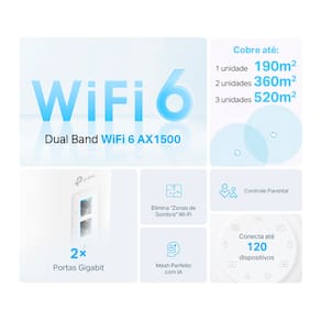 Conexões mais rápidas: Wi-Fi 6 com velocidades de até 1.500 Mbps - 1.201 Mbps em 5 GHz e 300 Mbps em 2,4 GHz.