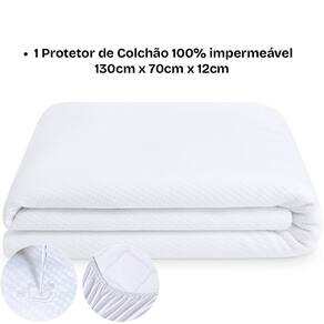 Características: 2 Lençois de Malha com Elástico Bublim Baby (70 cm x 130 cm x 15 cm) 3 Unidades de cueiro 100% algodão Incomfral (100 cm x 80 cm) 1 Protetor de colchão Impermeável BF Colchões (130 cm x 70 cm x 12 cm)