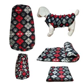 Kit Roupa E Manta Soft Para Cães - Preto Mosaico Gg