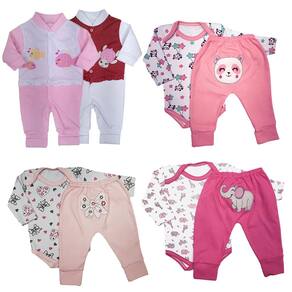 Kit Roupas de Bebê 8 Peças Conjuntos e Macacão Longo Suedine