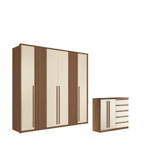 A comoda possui 2 portas,5 gavetas e 1 cabideiro, garantindo um amplo espaço para armazenar desde sapatos e roupas a todos os tipos de itens.