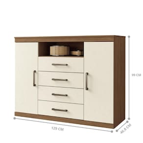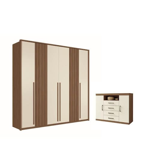 A comoda possui 2 portas,5 gavetas e 1 cabideiro, garantindo um amplo espaço para armazenar desde sapatos e roupas a todos os tipos de itens.