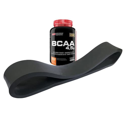 O kit é composta por: - Rubber Band - cinza - tensão leve 8mm espessura - Bcaa 100g tangerina - Bodybuiders O BCAA é um suplemento alimentar que contribui na recuperação do desgaste físico decorrente de treinos intensos e auxilia no descorforto pós-treino. O BCAA é um suplemento altamente utilizado por pessoas que buscam levar uma vida mais saudável em conciliação com uma alimentação também saudável e a prática de atividades físicas. O BCAA faz parte dos aminoácidos de cadeia ramificada contendo em sua fórmula: Leucina, Valina e Isoleucina. Essas mesmas moléculas presentes no BCAA são encontradas nas fibras musculares, porém em maior quantidade, equivalendo 35% dos principais aminoácidos presente na proteína muscular. Elementos esses que contribuem para uma recuperação rápida e eficaz dos exercícios físicos praticados e no ganho de massa muscular. Por essa razão são tão importantes para quem treina pesado. Isento de registro - RCD 27/2010 ANVISA .