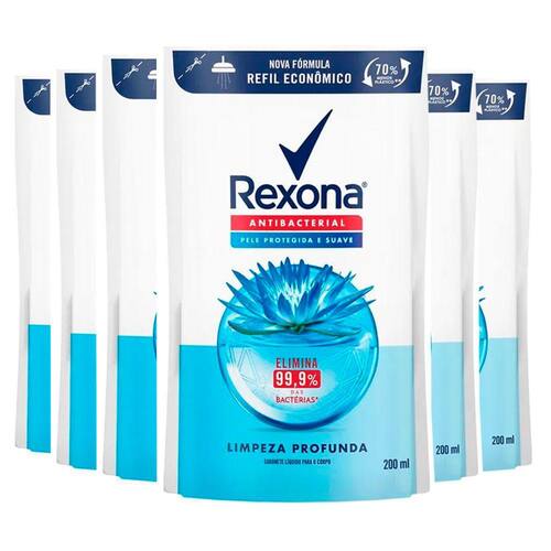 O Sabonete Líquido Rexona Refil Antibacterial Limpeza Profunda foi desenvolvido com o objetivo de manter uma rotina de higiene e cuidado com a saúde, oferece eficiência na limpeza das mãos, eliminando a sujeira e 99,9% das bactérias. Contêm em sua fórmula uma combinação de ingredientes que causam uma sensação de frescor, pois possui aromas florais de jasmim e lírio com notas cítricas. Além disso promove uma higiene sem ressecar a pele, por ter um Ph adequado.