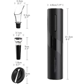 O Kit Abridor de Vinho Elétrico Automático é a solução definitiva para abrir garrafas de vinho com praticidade e elegância. Com um simples toque no botão, o abridor remove a rolha em segundos, sem esforço ou risco de quebra. O kit inclui um cortador de papel-alumínio, que prepara a garrafa para a abertura, e um arejador, que oxigena o vinho durante o serviço, realçando seu aroma e sabor.