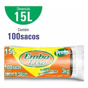 O Kit Saco para Lixo Super Econômico 15L Ecom Preto Embalixo é ideal para o descarte de resíduos de comida em ambientes domésticos ou corporativos. Com 300 sacos descartáveis no total, distribuídos em 3 pacotes com 100 unidades cada, oferece praticidade e economia no dia a dia. A capacidade de 15 litros por saco é adequada para resíduos comuns, ajudando a manter o ambiente limpo e organizado. Seu material descartável foi desenvolvido para suportar o peso dos resíduos, reduzindo riscos de rasgos e vazamentos. A Embalixo é uma marca especializada em soluções para descarte de lixo, oferecendo produtos funcionais para diferentes rotinas de uso.