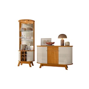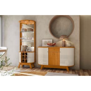 A composição une a Cristaleira Marina, perfeita para expor taças, louças e objetos decorativos, com o Buffet Monza, que oferece excelente espaço interno para organização da rotina.