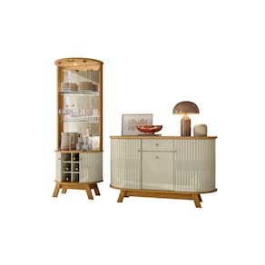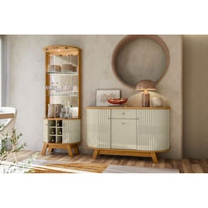 A composição une a Cristaleira Marina, perfeita para expor taças, louças e objetos decorativos, com o Buffet Monza, que oferece excelente espaço interno para organização da rotina.