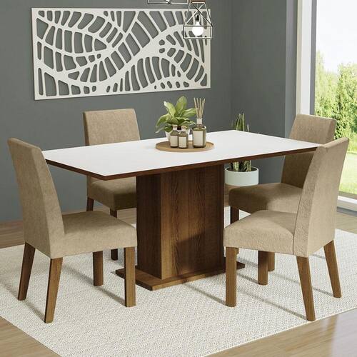 Conjunto Sala De Jantar Mesa Tampo De Madeira 4 Cadeiras Rustic/branco/imperial Keila Madesa Rustic/branco/imperial Para quem busca deixar sua sala de jantar ou cozinha com um toque moderno e aconchegante, o Conjunto Keila da Madesa é a escolha perfeita!