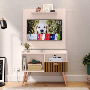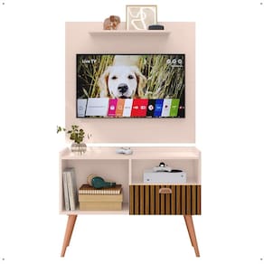 O painel conta com uma prateleira organizadora, ideal para acomodar itens decorativos e eletrônicos. Já o Rack possuí dois nichos espaçosos, o que facilita na organização. Seu puxador lauren agrega modernidade e beleza ao móvel.