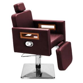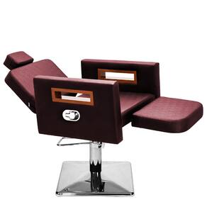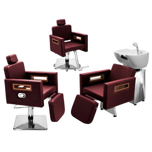 Kit Salão de Beleza 1 Cadeira Fixa + 1 Reclinável C/Ap Quadrada + 1 Lavatório C/Ap Base Inox Tunísia - Cor: Bordô