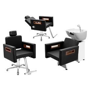 Kit Salão de Beleza 1 Cadeira Fixa + 1 Reclinável Estrela + 1 Lavatório Tunísia - Cor: Preto