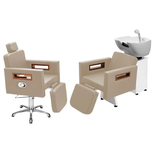 Kit Salão de Beleza 1 Cadeira Reclinável C/Ap Estrela + 1 Lavatório C/Ap Tunísia - Cor: BrancoPérola