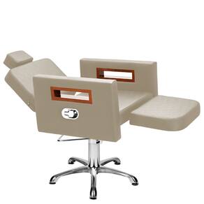 - 01 Cadeira Tunísia Reclinável Com Apoio: encosto reclinável, base hidráulica, apoio móvel estofado, cabeçote ajustável e removível