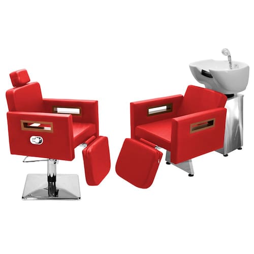 Kit Salão de Beleza 1 Cadeira Reclinável C/Ap Quadrada + 1 Lavatório C/Ap Base Inox Tunísia - Cor: Vermelho
