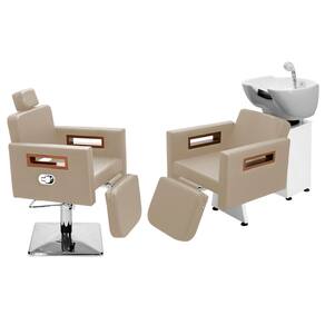 Kit Salão de Beleza 1 Cadeira Reclinável C/Ap Quadrada + 1 Lavatório C/Ap Tunísia - Cor: BrancoPérola