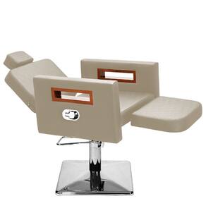 - 01 Cadeira Tunísia Reclinável Com Apoio: encosto reclinável, base hidráulica, apoio móvel estofado, cabeçote ajustável e removível