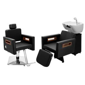 - 01 Cadeira Tunísia reclinável, base hidráulica, cabeçote ajustável e removível. - 01 Lavatório Tunísia com apoio móvel, base branca/preta, base de ferro galvanizada, cuba de porcelana móvel, registro cromado com função monocomando, não acompanha aquecedor. PREZADOS CLIENTES, PARA EVITAR RISCOS DE ACIDENTE, É IMPRESCINDÍVEL QUE ESTE LAVATÓRIO SEJA PARAFUSADO NO CHÃO PELOS PONTOS DE FIXAÇÃO DENTRO DA ESTRUTURA.