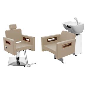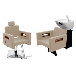 Kit Salão de Beleza 1 Cadeira Reclinável Quadrada + 1 Lavatório Tunísia - Cor: BrancoPérola