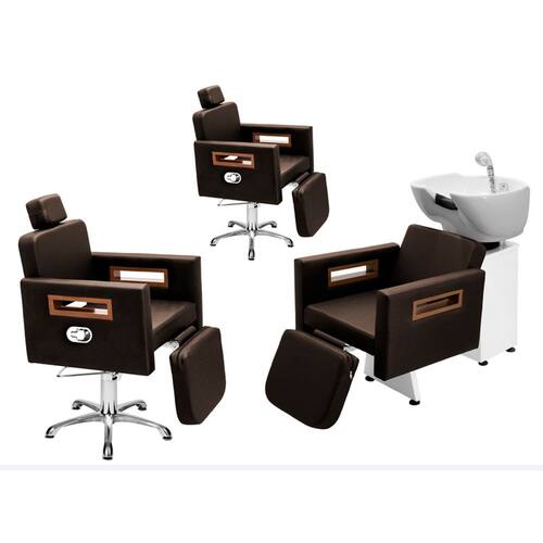 Kit Salão de Beleza 2 Cadeiras Reclináveis C/Ap Estrela + 1 Lavatório C/Ap Tunísia - Cor: MarromCafé