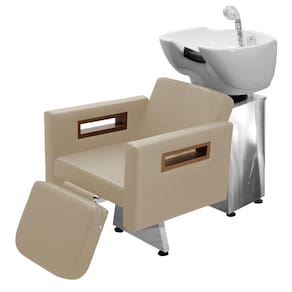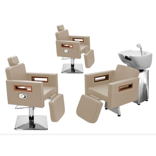Kit Salão de Beleza 2 Cadeiras Reclináveis C/Ap Quadrada + 1 Lavatório C/Ap Base Inox Tunísia - Cor: BrancoPérola