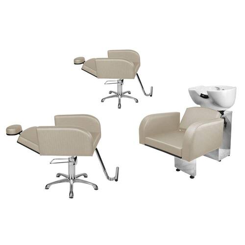 - 1 Lavatório Porcelana Destak Base Inox: com um design clean, braços estofados com detalhe arredondado na ponta, espuma de alta densidade e assento amplo que proporcionam conforto e comodidade durante o atendimento. Cuba de porcelana branca com ajuste de altura e com ducha cromada e registro que tem a função de manocomando, que permite que você altere a temperatura da água sem precisar mexer na chave do aquecedor! Tudo isso com a alta resistência da base de ferro inox!