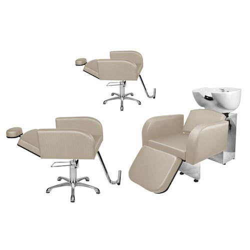 - 1 Lavatório Porcelana Destak Com Apoio Base Inox: com um design clean, braços estofados com detalhe arredondado na ponta, espuma de alta densidade, assento amplo e um apoio de pernas estofado com regulagem de altura que proporcionam conforto e comodidade para seu cliente durante a lavagem do cabelo. Cuba de porcelana branca com ajuste de altura e com ducha cromada e registro que tem a função de manocomando, que permite que você altere a temperatura da água sem precisar mexer na chave do aquecedor! Tudo isso com a alta resistência da base de ferro inox!