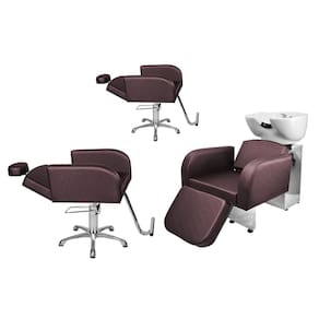 - 1 Lavatório Porcelana Destak Com Apoio Base Inox: com um design clean, braços estofados com detalhe arredondado na ponta, espuma de alta densidade, assento amplo e um apoio de pernas estofado com regulagem de altura que proporcionam conforto e comodidade para seu cliente durante a lavagem do cabelo. Cuba de porcelana branca com ajuste de altura e com ducha cromada e registro que tem a função de manocomando, que permite que você altere a temperatura da água sem precisar mexer na chave do aquecedor! Tudo isso com a alta resistência da base de ferro inox!