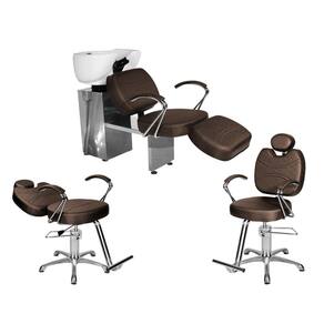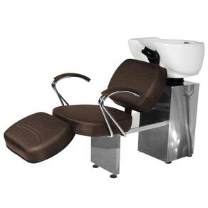 - 1 Lavatório Topázio Com Apoio Base Inox: com um design autêntico, acabamento em costura, assento amplo em espuma de alta densidade e apoio de pernas estofado com regulagem de altura que proporcionam conforto durante o atendimento, braços em ferro cromado com estofado, cuba de porcelana branca com ajuste de altura, ducha cromada e registro com função manocomando que trazem praticidade pra você durante a lavagem dos cabelos. Tudo isso com a alta resistência da base de ferro inox!