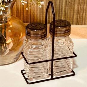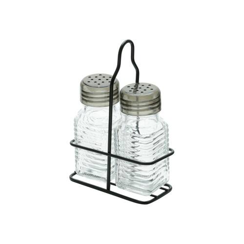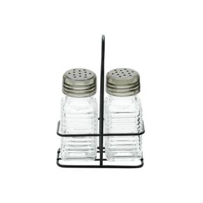 Itens inclusos: 1 Saleiro de Vidro C/Tampa Plástica 10x4cm 1 Pimenteiro de Vidro C/Tampa Plástica 10x4cm 1 Suporte de Metal Preto 14x9cm
