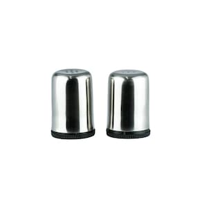 Cuidados para Manter o Brilho: Lave sempre com esponja macia e detergente neutro. Kit Saleiro e Pimenteiro Inox Light Design Moderno