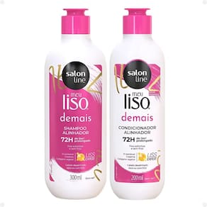 O Kit Salon Line Meu Liso Demais Alinhador é a escolha perfeita para quem deseja cabelos lisos, disciplinados e sem frizz. Composto por Shampoo 300ml, Condicionador 200ml e Spray Defrizante Desembaraçante 200ml, esse kit proporciona um cuidado completo para fios mais alinhados, macios e protegidos. O shampoo limpa suavemente os fios enquanto controla o frizz e prepara o cabelo para um alisamento suave. Sua fórmula eficaz mantém os fios hidratados e disciplinados desde a primeira aplicação. O condicionador hidrata profundamente, selando as cutículas capilares e proporcionando brilho intenso e maciez. O condicionador ajuda a manter o alisamento por mais tempo e deixa os fios mais sedosos e fáceis de desembaraçar. O spray defrizante desembaraçante proporciona proteção térmica contra o calor de secadores e chapinhas, além de ajudar a desembaraçar os fios e controlar o frizz. O spray deixa o cabelo mais alinhado, sem pesar, e garante um efeito liso e duradouro. Este kit foi desenvolvido para cabelos lisos, alisados ou em processo de alisamento, oferecendo cuidados diários que alinham, hidratam e protegem os fios. Com o Kit Meu Liso Demais Alinhador, seus cabelos ficam mais suaves, controlados e com aquele brilho saudável, prontos para encarar o dia com confiança.