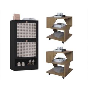 Kit Sapateira 2 Portas E 2 Mesas De Cabeceira/centro Poquema Carvalho/preto Kit Moveis Spin/Tropical 2 Mesas de Cabeceira e 1 Sapateira 2 Portas Poquema Leve funcionalidade, organizacao e estilo para sua casa com o Kit Tropical da Poquema Moveis, composto por 2 Mesas de Cabeceira e 1 Sapateira. Com design moderno e estrutura em BP (Laminado de Baixa Pressao), os moveis sao resistentes a riscos, umidade e manchas, garantindo durabilidade e facil manutencao.