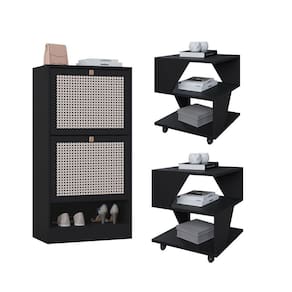 Design contemporaneo e cores modernas Estrutura em BP resistente e duravel Mesas com rodizios para facil movimentacao Sapateira com portas 3D imitando palha indiana Facil de montar produtos enviados desmontados