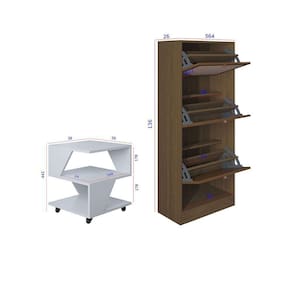 Destaques: Design contemporaneo e cores modernas Estrutura em BP resistente e duravel Mesas com rodizios para facil movimentacao Sapateira com portas 3D imitando palha indiana Facil de montar produtos enviados desmontados