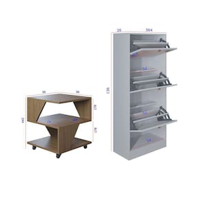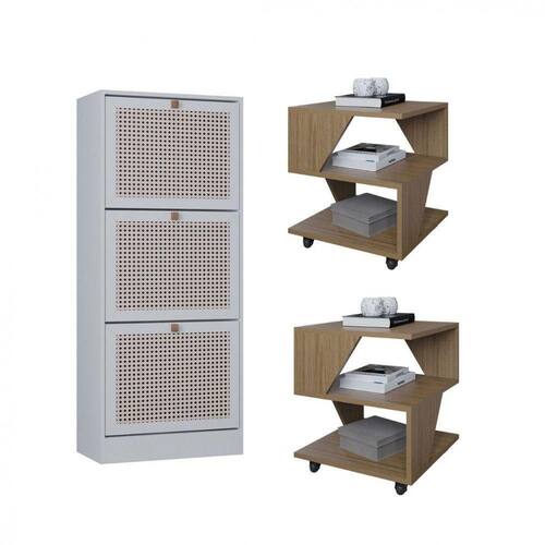 Destaques: Design contemporaneo e cores modernas Estrutura em BP resistente e duravel Mesas com rodizios para facil movimentacao Sapateira com portas 3D imitando palha indiana Facil de montar produtos enviados desmontados