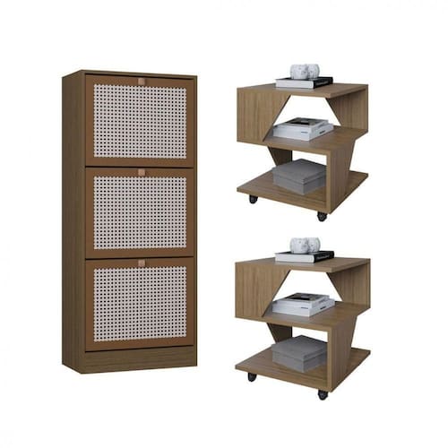 Kit Sapateira Spin Tropical 3 Portas E 2 Mesas De Cabeceira Carvalho